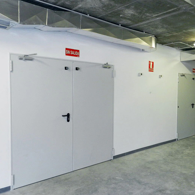– Porta corta-fogo, homologada, com dois espigões de segurança